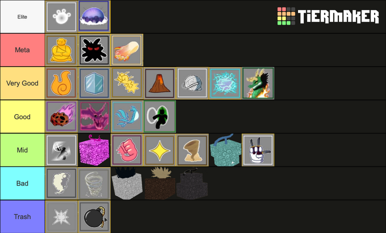 A-tier fruits are good but they cant compare to the S-tier fruits. The table below representes the best and worst Blox Fruits in the game right now. Enyu_is_Pro new - 2x experience for your character.